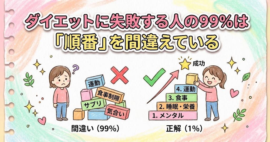 このルールを無視して、いきなり運動したり食事を変えたりするから、効果が出ずに挫折するのです。